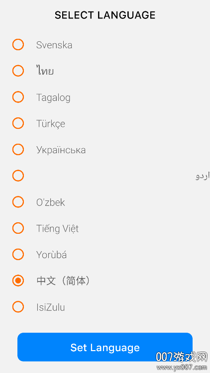下拉滑动选择语言为中文