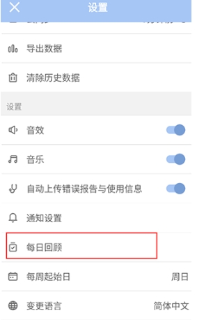 进入设置页面,滑动找到每日回顾点击进入