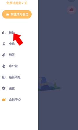 在打开的侧边栏菜单中选择统计选项