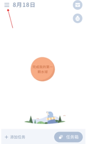 打开WaterDo水球清单,选择左上角的菜单图标进入