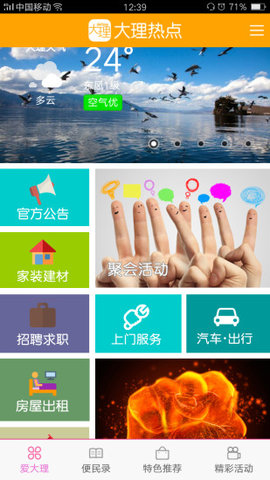 大理热点是一款专为大理用户量身定制的手机应用,我们致力于提供:官方资讯发布、便民信息查询、房屋租赁服务、人才招聘平台、家装建材选购、汽车美容维修等全方位线上服务。在这里,您能享受到更便捷的城市生活,找到所需的一切资源。感谢您的使用!