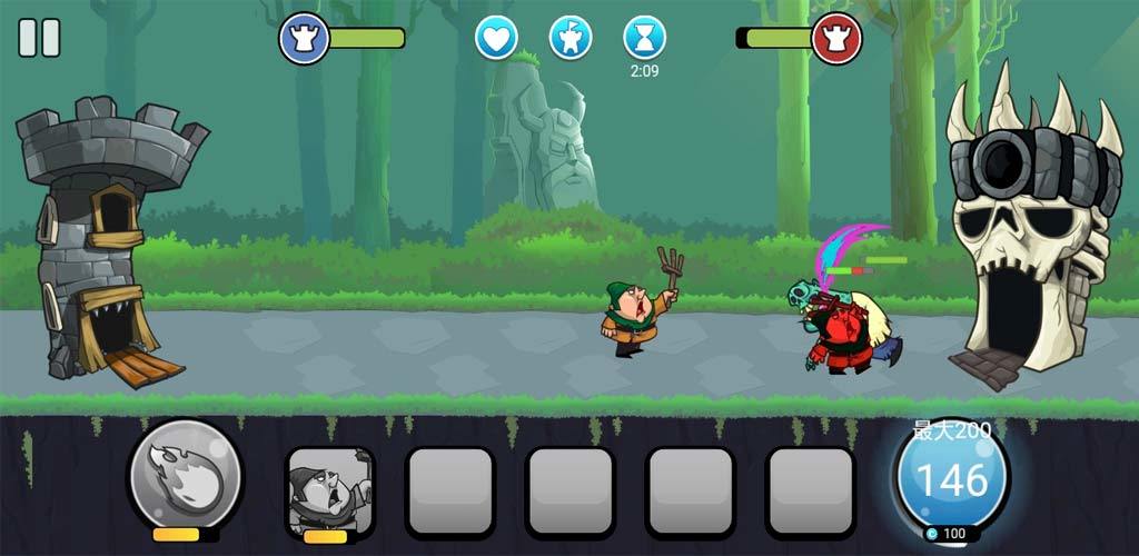 结合了塔防策略和卡牌收集养成两个玩法在内的手机游戏,有着相当精致的画面。玩家可以在这打造一个自己的军团,并让它们逐步变得强大起来,以拯救这个王国。游戏中还有精彩的主线和任务,并且每当你击杀一个怪物或者BOSS,就能获得对应的奖励哦。