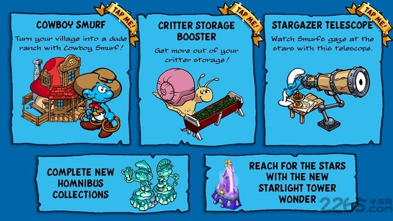 -更多Smurfy的项目和建筑来装饰你的村庄。