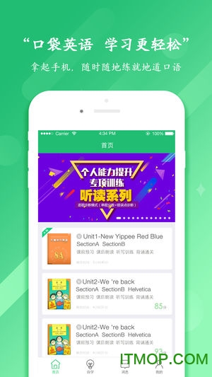 支持学生自学英语听说,也可以接收并完成老师通过咔咪教师端布置的课堂同步听说作业;