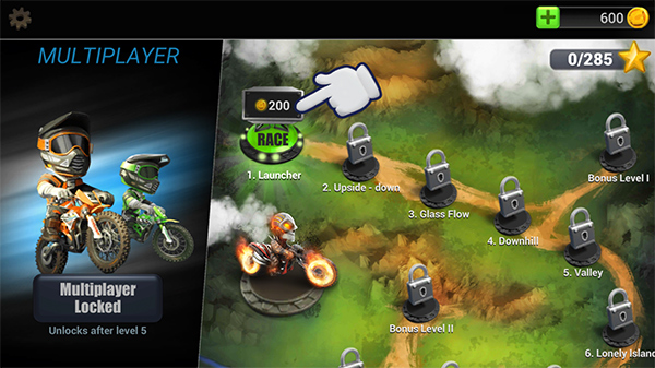 游戏提供便捷的内购选项,玩家可以购买金币、解锁全部赛道或高级摩托车部件。不过即使不进行内购,也能通过技巧轻松赢得比赛。