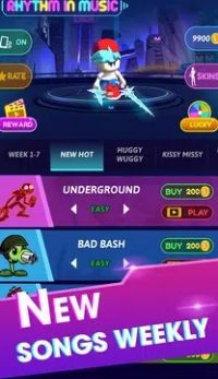 充满乐趣的挑战内容,实时更新的排行榜系统;清新卡通画风搭配简单易上手的操作;创新的黑色星期五之夜主题,突破传统音乐游戏框架。
