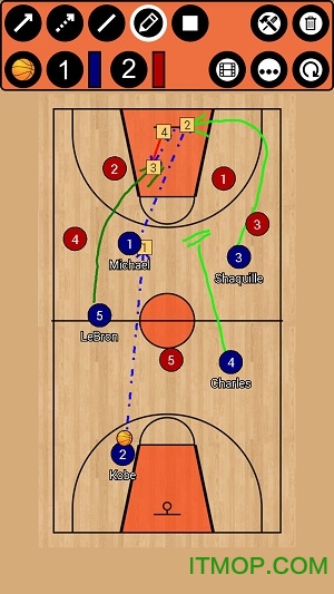 篮球战术板,允许您为每个比赛情况创建自己的战术,免费和无注册,也不需要支付更高级的工具;)。直观的UI,简单,快速使用。