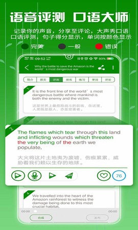 每周更新BBC热点话题,确保内容时效性,并提供中文翻译和简介。针对不同英语水平的学习者,提供全英文和中英文对照两种模式,可自由切换。精选英国各大网站的优质音频内容,经过专业编辑团队精心制作。生词本采用科学记忆排序,帮助用户高效掌握生词。智能语音评测系统能精准定位发音问题,给出专业评分。