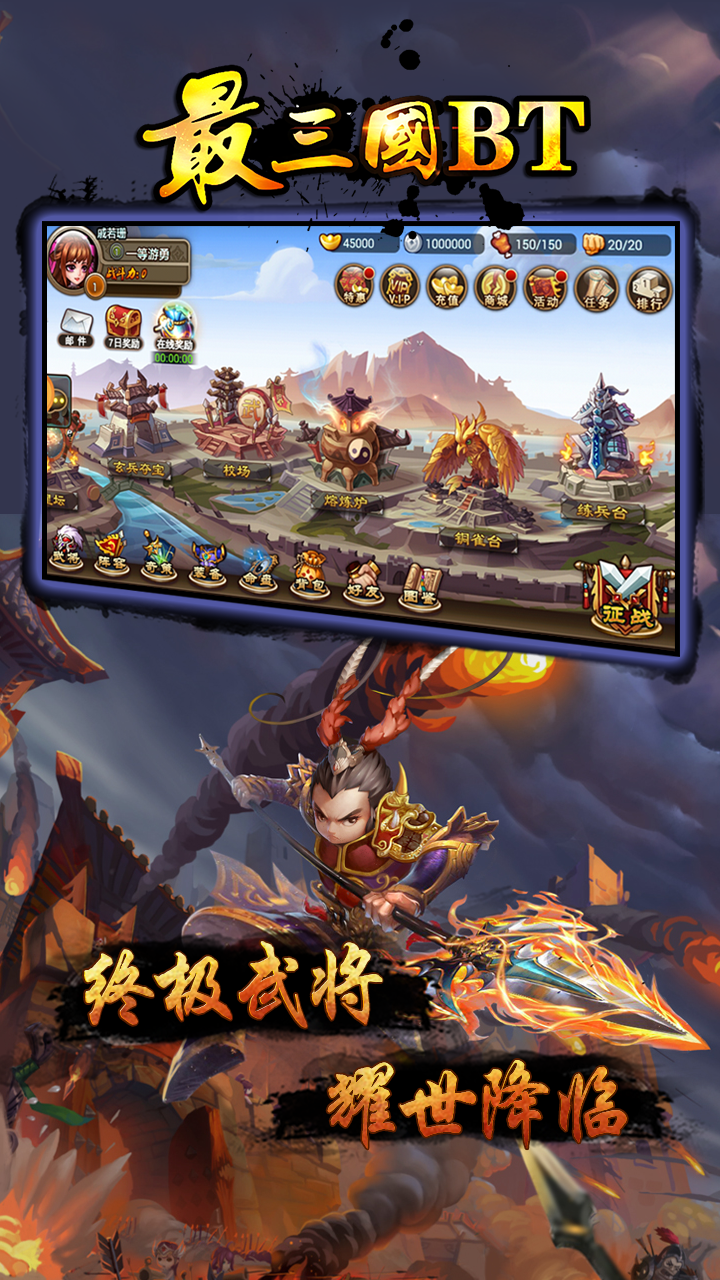 开服活动:"鬼神吕布"。开服1-7日,冲榜就有机会获得鬼神吕布魔王级武将,全服限量尽享霸服。