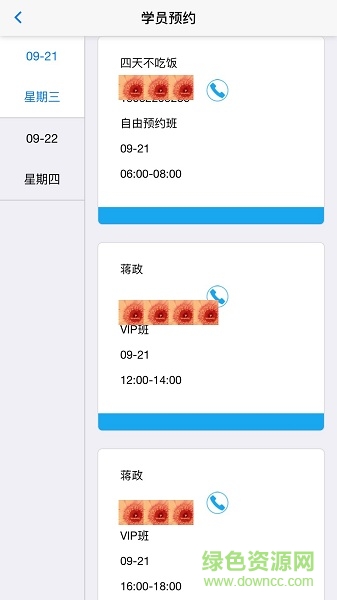 支持教练自主设置课程表,实时查看学员预约情况;