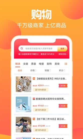 智能检索各大电商平台商品信息,90%商品可享无门槛优惠;