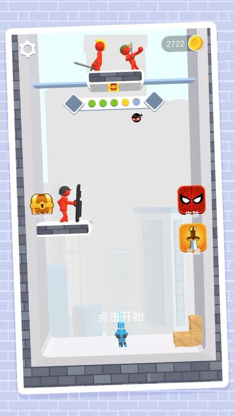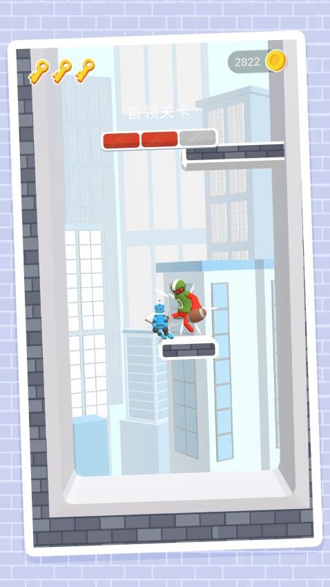 火柴人登顶之路是一款融合了平台跳跃与战斗元素的休闲动作游戏。玩家将在多个风格迥异的城市关卡中展开冒险,可以选择忍者、机器人等各具特色的角色进行游戏。通过灵活走位和环境利用,击败平台上的敌人,同时收集金币和钥匙来解锁更多内容。