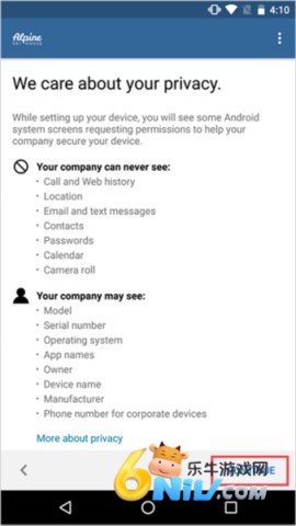 设备开始注册,如果使用SamsungKnox设备,需先确认隐私政策。