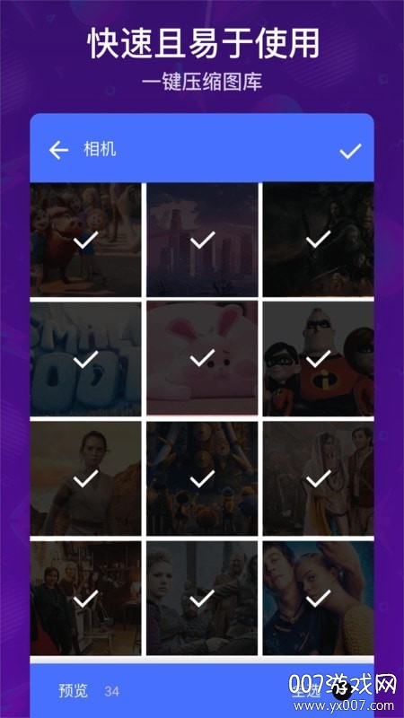 照片压缩器可以将5M照片压缩为800KB,同时非常高清。可以将300M视频压缩到30M,同时确保非常高清。