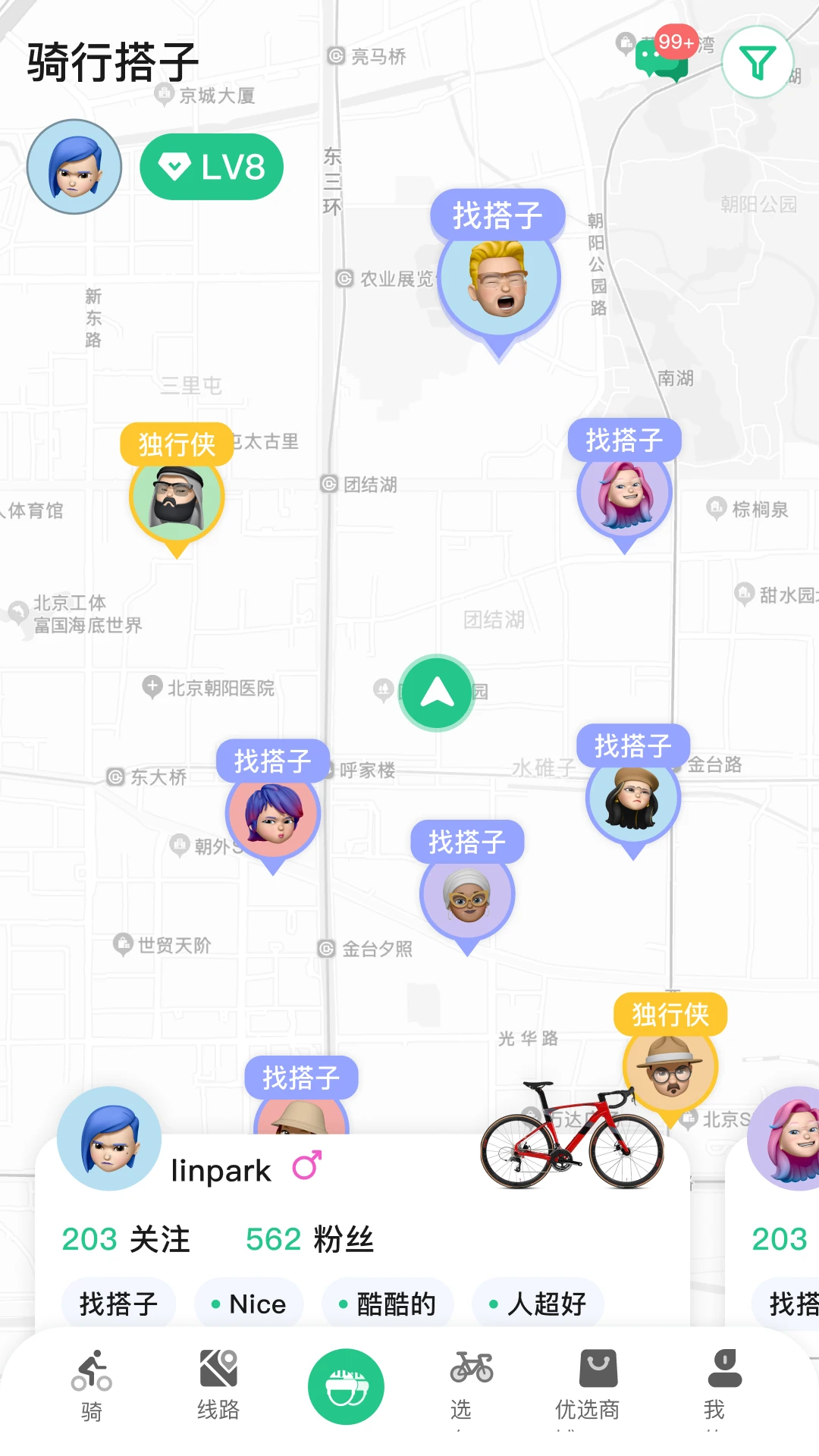 路线分享与:用户可以将自己的骑行路线分享给其他骑友,同时也可以查看其他骑友分享的路线。这一功能不仅增加了骑行的乐趣,还能让骑行者发现更多未知的骑行路线和景点。此外,app还提供周围的路线、骑友、落脚点、驿站等信息,方便骑行者进行探索和规划。