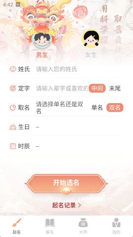 赖布衣取名测算吉凶app是一款功能丰富、服务贴心的起名软件,它将传统文化与现代科技相结合,为用户提供了高效、便捷、专业的命名服务。无论是为宝宝取名还是为自己改名,用户可以更好地掌握名字的适用范围,它都是一个值得信赖的选择。