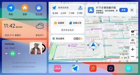 氢桌面车机版是一款专为车载场景打造的桌面美化软件,目前完全免费。软件适配多种屏幕形态,包括横屏、竖屏和方屏布局,提供4种预设布局方案。用户可自由定制桌面卡片、应用图标和背景壁纸,具备丰富的个性化功能。特色功能包括悬浮高德地图导航(微信扫码即可免费使用)、智能计划任务管理以及开机自动播放音乐等实用特性。