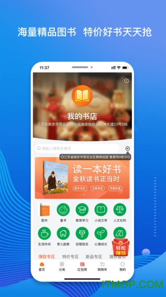 我的书店,一款属于你自己的线上。平台通过好书推荐、畅销书、特色书单青春文学等特色专题栏目及各种促销活动,致力于为读者提供价廉物美的正版优质书籍,是爱书人的必备淘书app。同时,我们欢迎广大图书经销商和个人爱好者免费入驻平台成为店主,开启自购省钱,分享新模式。