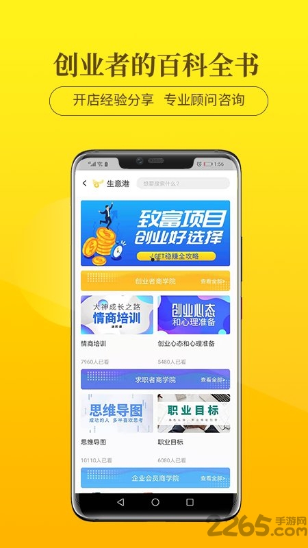 生意港app是一款专为创业者及商业爱好者打造的实用学习工具。这款应用汇聚了丰富的商业知识与创业指导资源,通过系统化的培训内容,帮助用户掌握经营之道,解决创业路上的各种难题。无论您是初入商海的新手还是寻求突破的经营者,都能在这里找到有价值的资讯,欢迎前往2265安卓网获取这款应用。