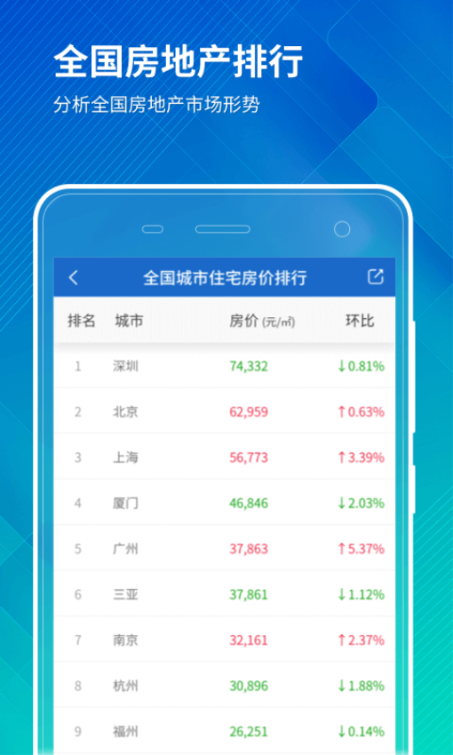 禧泰房价行情app(原名:中国房价行情网)由中国房地产协会权威发布,致力于打造专业全面的房地产信息平台。通过这款应用,您可以轻松查询全国各地城市、区县乃至乡镇的房价与租金数据,是了解中国房地产市场的得力助手。