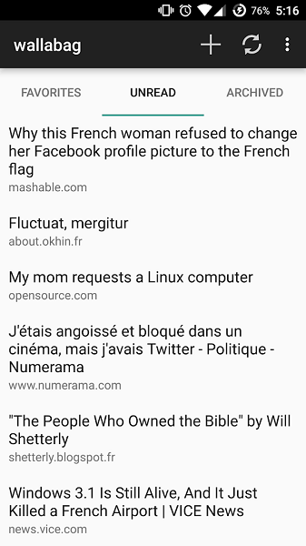 这款安卓应用让你可以随时随地阅读和管理收藏的文章,所有内容都会自动同步到wallabag服务器。