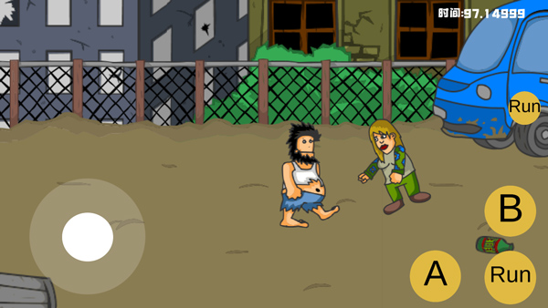 进入游戏,屏幕左边控制移动,右边则为攻击键、以及奔跑键。