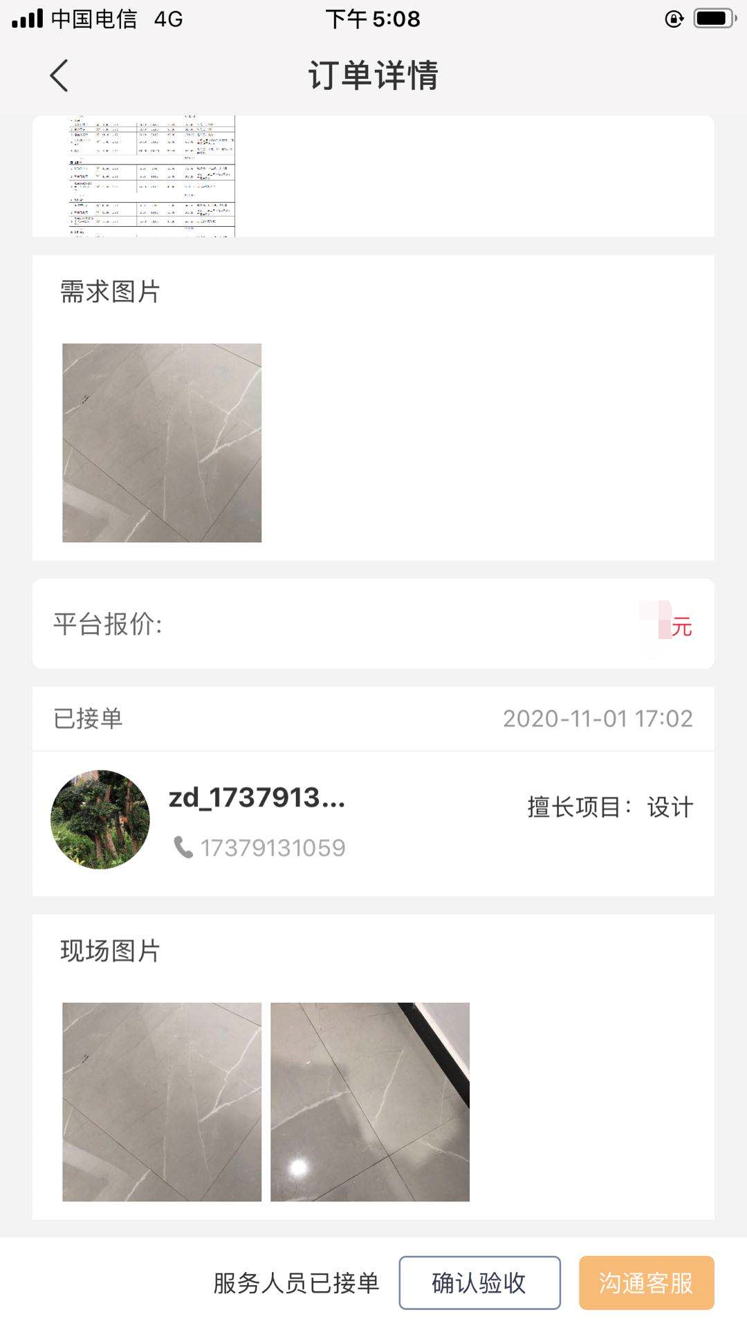 且可以清晰看到装咚平台对客户发布的需求订单的报价、施工过程及结果,并可以对服务人员进行合理的评分及评价。