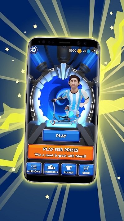 在这场疯狂的无限赛车冒险中扮演LeoMessi,穿越不同的星球和太空。