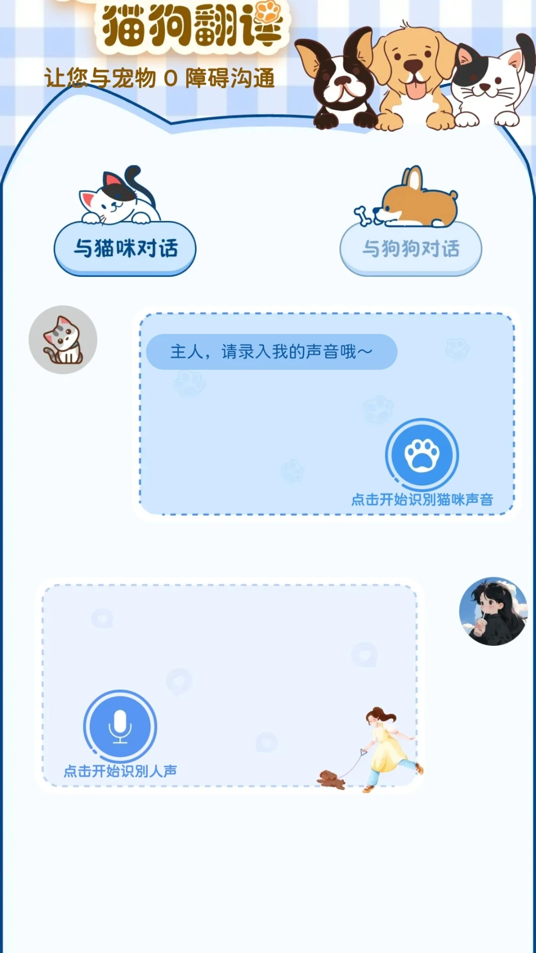 宠物交流翻译器是一款创新的宠物行为解读应用,通过分析宠物的叫声、动作和表情,帮助主人更好地理解爱宠的需求和情绪。应用支持猫、狗等多种宠物类型,收录超过200种常见行为模式,提供实时翻译和互动建议。(该软件仅供娱乐)