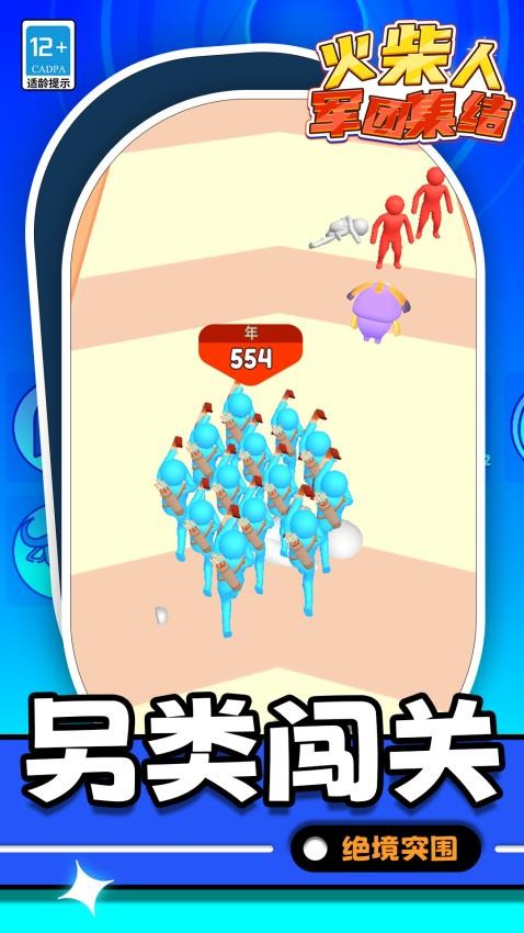 火柴人军团集结手机版是一款充满创意的休闲跑酷游戏。玩家需要巧妙控制火柴人队伍在跑道上快速前进,通过不断壮大军团规模来提升战斗力。游戏过程中需要敏锐观察道路变化,及时应对各种障碍和挑战,才能带领军团走向胜利。随着游戏推进,玩家将解锁更多强力武器和特殊技能,体验不同时代的战斗风格。多样化的对战模式让每场挑战都充满新鲜感,快来组建你的火柴人军团吧!