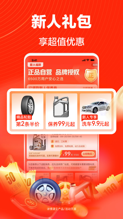 新老用户每日可抽取轮胎券、保养券、车品券等随机红包,优惠天天享。