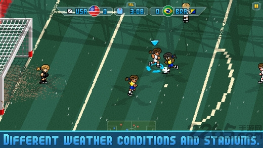 由于防守只有铲球,没有任何的正面拦截动作,因此利用摇杆就能直接控制速度快的球员,通过简单的变向动作过完一串人,然后杀入禁区,这就是你唯一需要做的事情。《像素足球世界杯16》采用了第一代(同时也是如今主流的足球手游)所采用的"虚拟摇杆+双键"操作设置:在己方持球状态下,叉键和方块键分别控制传球与射门,长按蓄力之后可以发出空中球和劲射;防守状态下叉键为切换球员,方块键实施防守(铲)动作。该作的攻防方式,和我们熟悉的卡通类足球手游亦无太大区别。没有什么门是一脚S型球解决不了的。