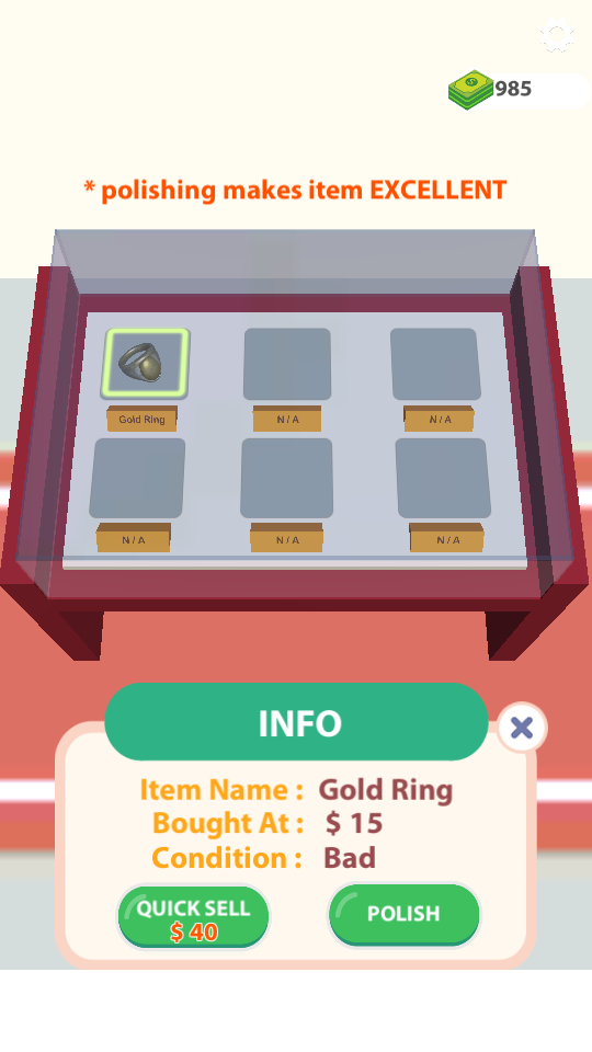 对收当的物品需要进行专业养护,长按屏幕即可进行精细打磨等操作。完善的修复系统能显著提升藏品品相,为后续交易创造更大利润空间。