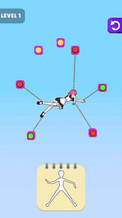 仔细观察屏幕下方的示例图片,准确连接木偶的各个关节;