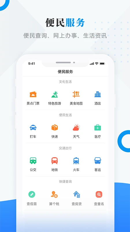 便民服务入口:整合水电缴费、社保查询、交通出行等日常服务
