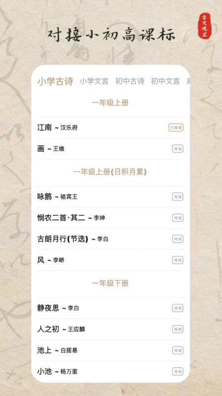内容资源丰富,融合诗文、成语、历史典籍,满足多样化古文学习需求。