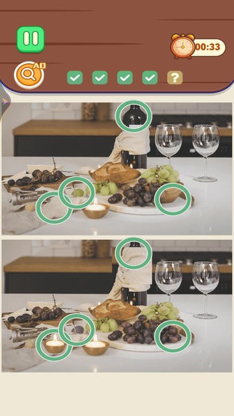 全新升级的画面素材和关卡设计带来更多挑战。轻松愉快的游戏氛围让玩家在休闲娱乐中放松身心。完善的成就系统和排行榜让玩家可以比拼找茬的速度和准确度。