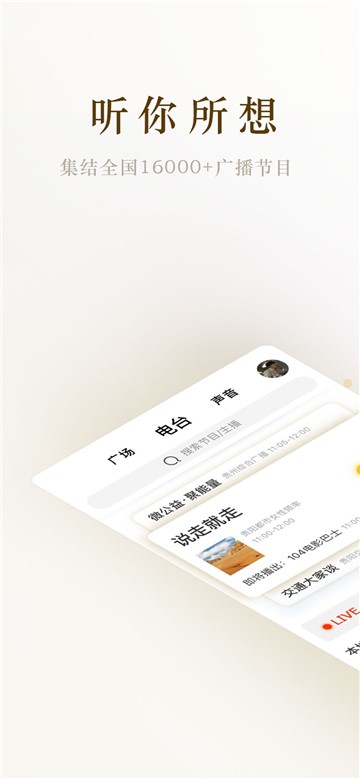 广播节目和电台内容分类,涵盖新闻资讯、音乐、旅游、商业财经、体育、听书、娱乐、教育、生活、情感、戏曲、文化、外语、亲子、脱口秀、美食、健康、汽车、法律、问医等20余个大类,40余个子类栏目,让你的每一次点击,都能获取你喜欢的声音。