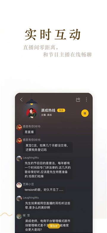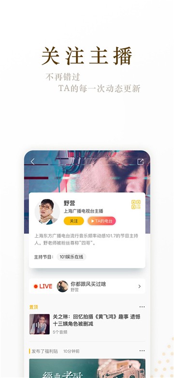 你可以关注自己喜欢的节目、主播,进入专属直播间,和你喜爱的节目主播在线畅聊。