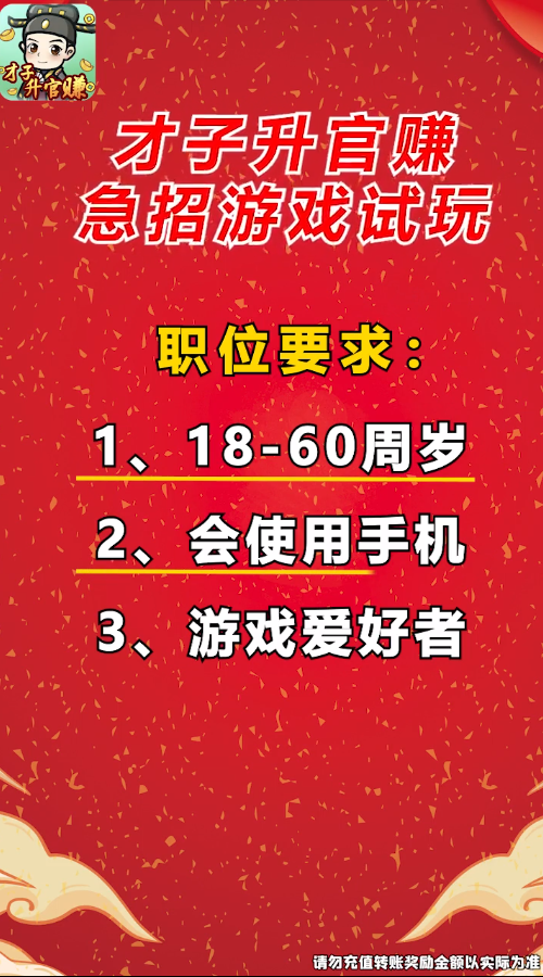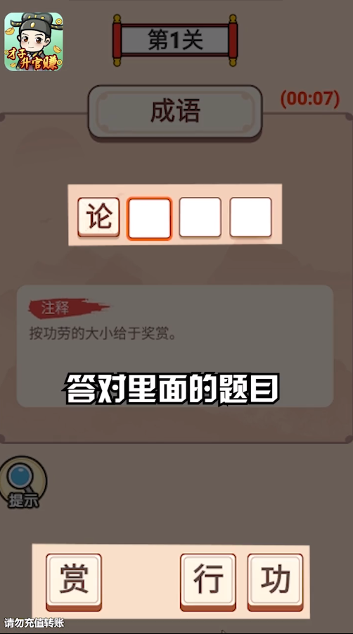 才子升官赚是一款寓教于乐的答题闯关游戏,玩家通过回答各类文化题目即可获得丰厚奖励。游戏采用轻松有趣的玩法设计,答对题目有奖,答错也能获得安慰奖励,让每位玩家都能享受答题的乐趣。每天参与游戏都有升官晋级的机会,通关后更能一次性领取惊喜红包。