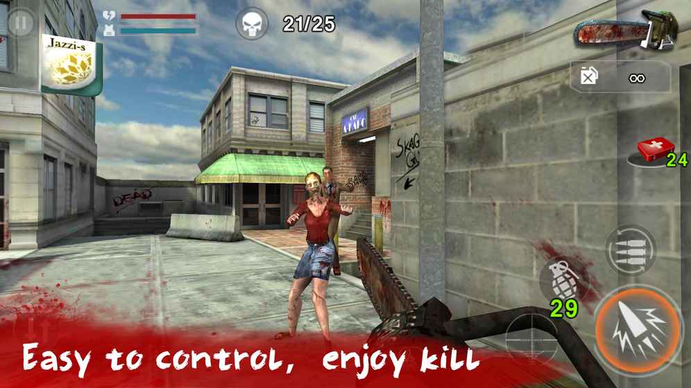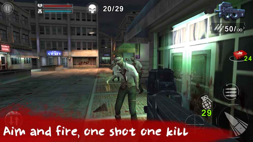-采用双摇杆操作、自动射击系统,让玩家专注于瞄准和跑位,快、准、狠、在僵尸丛中感受极限求生的紧张刺激。