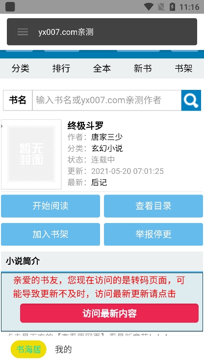 点击开始阅读,就能够阅读小说了
