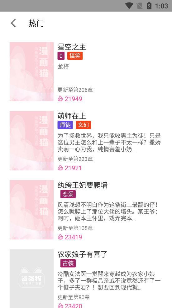 猫app是一款专注于漫画阅读的优质平台,汇聚了海量热门漫画资源。平台精心打造的热门榜单功能,能帮助用户快速发现感兴趣的漫画作品。无论是国内还是国外的精品漫画,都能在这里免费畅读。用户可将喜爱的漫画加入书架,享受便捷的阅读体验。更贴心的是,app支持离线缓存功能,让您随时随地都能沉浸在漫画世界中。