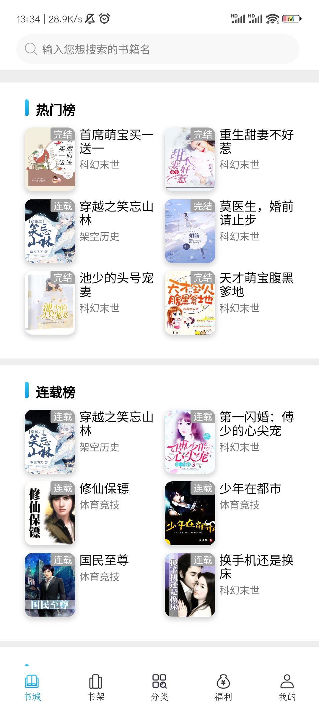 打开软件可以看到多种类型的榜单小说