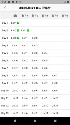 用户可自定义list数量,系统自动计算每日学习量,生成个性化学习计划表,支持正序或乱序版本。