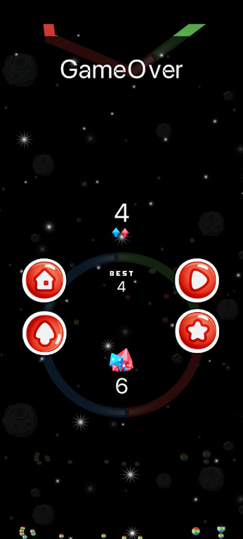游戏采用独特的颜色匹配机制,不同颜色的圆环需要根据旋转规律进行配对。系统为每个关卡设定了步数限制,玩家必须在限定步数内完成挑战。丰富的配色系统提供多达四种基础颜色,通过巧妙组合可以创造出无数种色彩搭配方案。