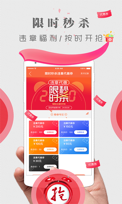 优惠券秒杀,并可转赠好友,省钱交违章。