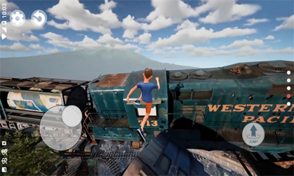 操作方式:右侧有奔跑和跳跃按钮,左下角滑动轮盘控制移动
