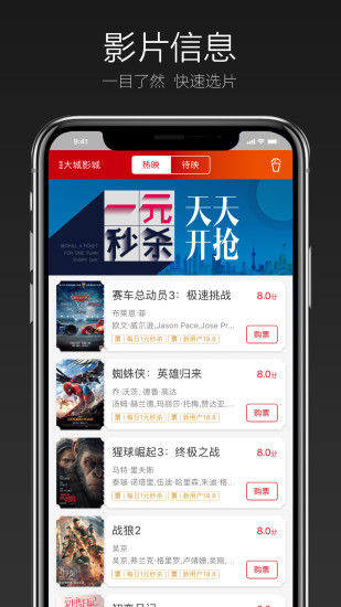 已经覆盖200+城市,5000+影院,让你享受快速低价的购票体验。