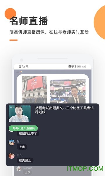 明星讲师直播授课,实现师生实时互动;
